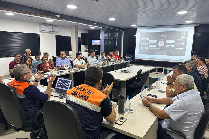 Manaus (AM) – Em um esforço conjunto para combater os impactos da estiagem que atinge o Amazonas este ano, prefeitos dos municípios de Codajás, Careiro da Várzea, Maraã, Nova Olinda do Norte e Silves se reuniram na sede da Defesa Civil do Amazonas, nesta terça-feira (12), para alinhar ações de mitigação dos efeitos da seca na esfera municipal.
