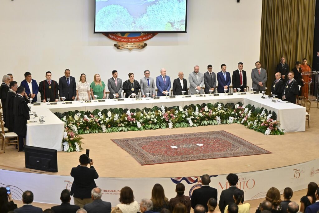Manaus (AM) – O Tribunal de Contas do Amazonas (TCE-AM) celebrou, nesta sexta-feira (14), a entrega do Colar do Mérito de Contas, maior honraria da instituição, reconhecendo nomes que contribuíram para o fortalecimento da administração pública e da boa governança no Estado. A solenidade integrou a programação especial pelos 75 anos da Corte e foi conduzida pela conselheira-presidente Yara Amazônia Lins.