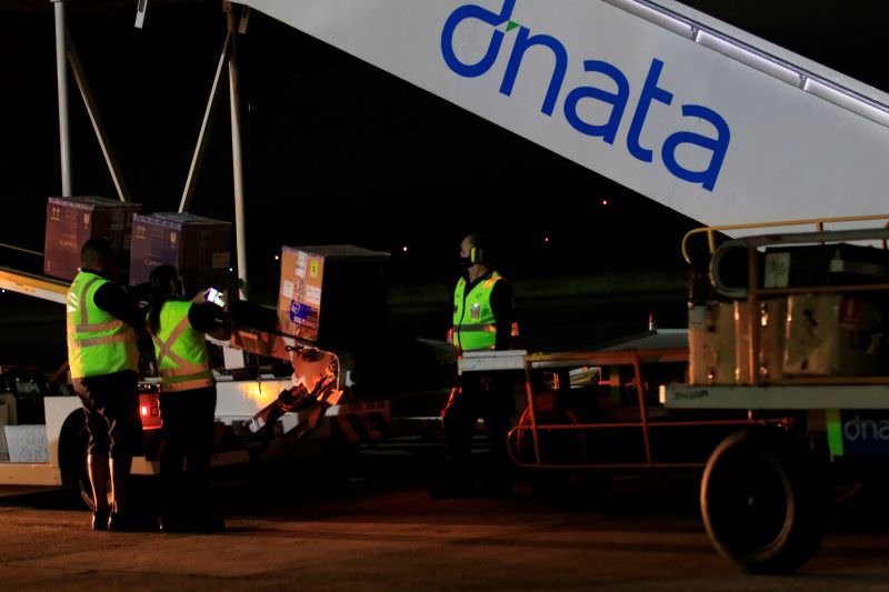 O lote foi desembarcado no Aeroporto Internacional Eduardo Gomes (Foto: Herick Pereira/Secom)