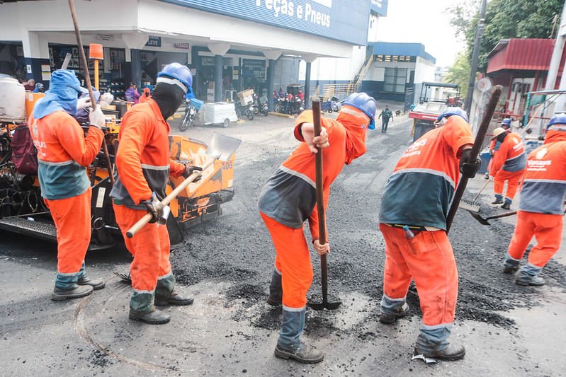 As equipes estão trabalhando em etapas. A primeira delas é a execução da fresagem das vias, que é a retirada do asfalto desgastado, seguido da recuperação do solo e as bases para, posteriormente, receberem a aplicação do novo asfalto.