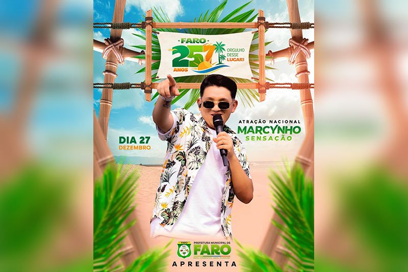 Como parte da programação oficial dos 257 anos, a Prefeitura Municipal de Faro anunciou uma atração nacional para celebrar o aniversário da cidade. O cantor Marcynho Sensação, sucesso em todo o Brasil, será uma das principais atrações das festividades, prometendo uma noite de muita música, alegria e emoção para a população farense e visitantes.