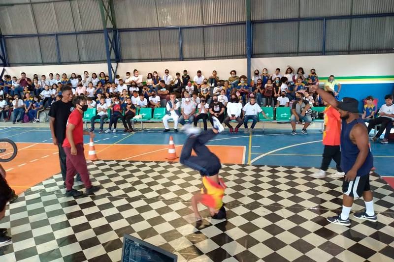 Manaus (AM) – A oficina “Hip Hop na Escola” foi encerrada com uma batalha de breaking entre os grupos de Bboys e Bgirls, grafite e o som de DJs, nesta sexta-feira (1º), à tarde, com uma plateia vibrante na escola estadual Cacilda Braule Pinto, no bairro do Coroado, zona Leste. O evento foi realizado pela Prefeitura de Manaus, por meio do edital “Manaus Faz Cultura”, do Conselho Municipal de Cultura (Concultura), e com apoio da Fundação Municipal de Cultura, Turismo e Eventos (Manauscult).