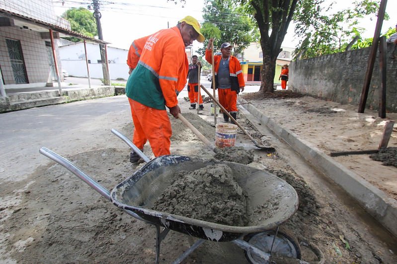 A ação é realizada pelo Distrito de Obras de Petrópolis, que conta com o apoio de dez trabalhadores, na confecção de 100 metros de calçada e recuperação da drenagem superficial, com meio-fio e sarjeta.
