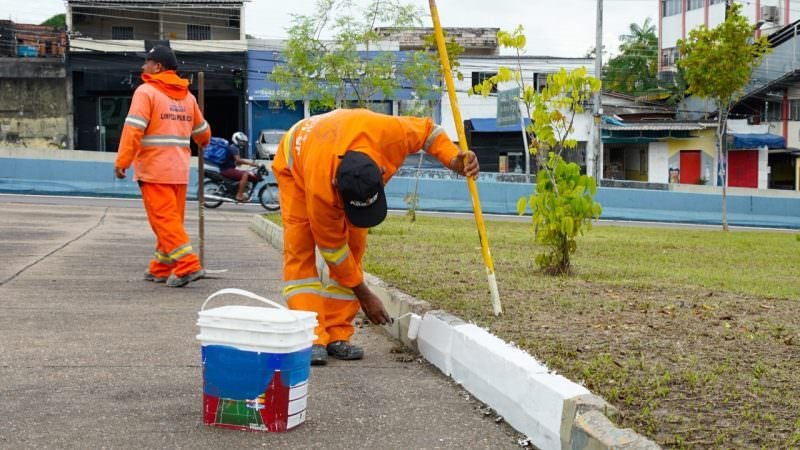 Manaus (AM) – Um dos espaços de convivência pública da cidade, a praça Comendador Sir Duke Expedito Monteiro, localizada no bairro Chapada, zona Centro-Sul, está sendo revitalizada pela Prefeitura de Manaus. Os serviços, coordenados pela Secretaria Municipal de Limpeza Urbana (Semulsp), consistem em podagem das árvores, lavagem, varrição, capinagem, pintura de meio-fio e mosaico que foram executados nesta sexta-feira, (4).