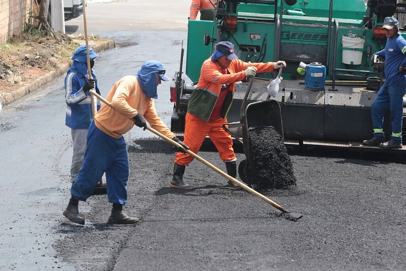A rua A1, do conjunto Flamboyant, está sendo totalmente recuperada em seus 500 metros de extensão. As equipes da Seminf aplicam na área 70 toneladas de massa asfáltica, para recuperar a via, que estava intrafegável, tomada pelo mato e pelos buracos.