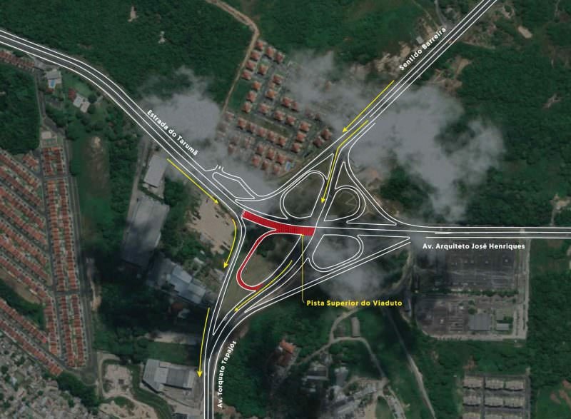 A interdição se dará apenas para quem trafega do bairro do Tarumã e da Barreira em direção à avenida José Henriques. Os outros percursos estarão operando normalmente.