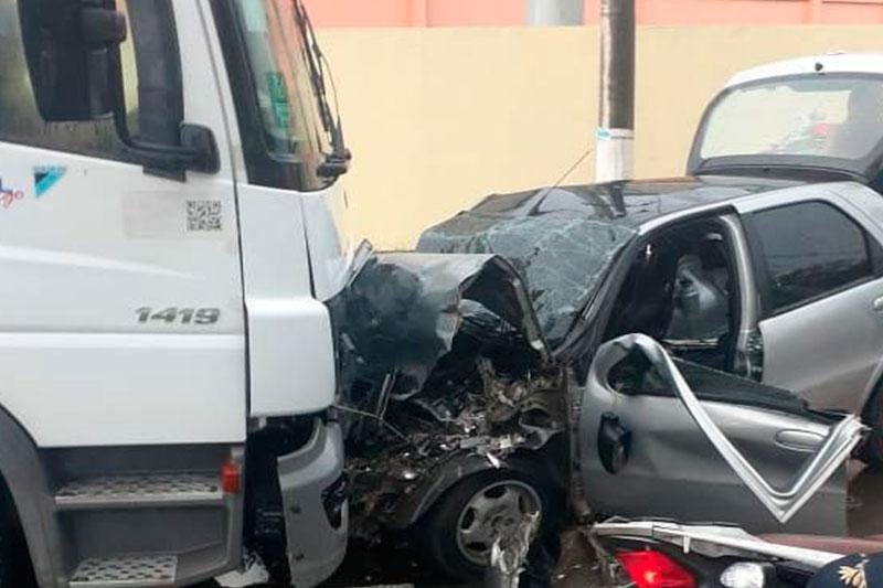 Desgovernado, o veículo de passeio invadiu a pista contrária e atingiu de frente um caminhão-baú da Actual Cargo Ltda, que trafegava sentido Centro-bairro. Com o impacto, Lucas Matheus ficou desacordado nos destroços do automóvel, que ficou totalmente destruído.