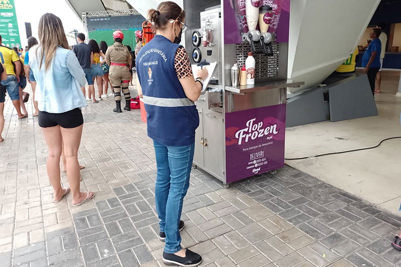 A ação deu continuidade à série de fiscalizações que a Gerência de Vigilância de Alimentos (GEVAli) da Visa Manaus tem feito no Podium, nome dado ao espaço externo para eventos da Arena, que fica de frente para a avenida Constantino Nery, no bairro Chapada, Zona Centro-Sul da cidade.