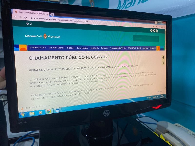 Manaus (AM) – A Prefeitura de Manaus, por meio da Fundação Municipal de Cultura, Turismo e Eventos (Manauscult), divulgou na última terça-feira (16), no Diário Oficial do Município (DOM), edição 5.407, caderno de número 1, o resultado preliminar da avaliação das propostas apresentadas no “Edital de Chamamento Público n.º 009/2022”, que dispõe sobre a venda de alimentos nas praças do entorno dos palcos “Tucupi” e “Caboquinho”, durante o festival “#SouManaus Passo a Paço 2022”, que acontecerá nos dias 3, 4, 5 e 6 de setembro deste ano, no centro histórico de Manaus.