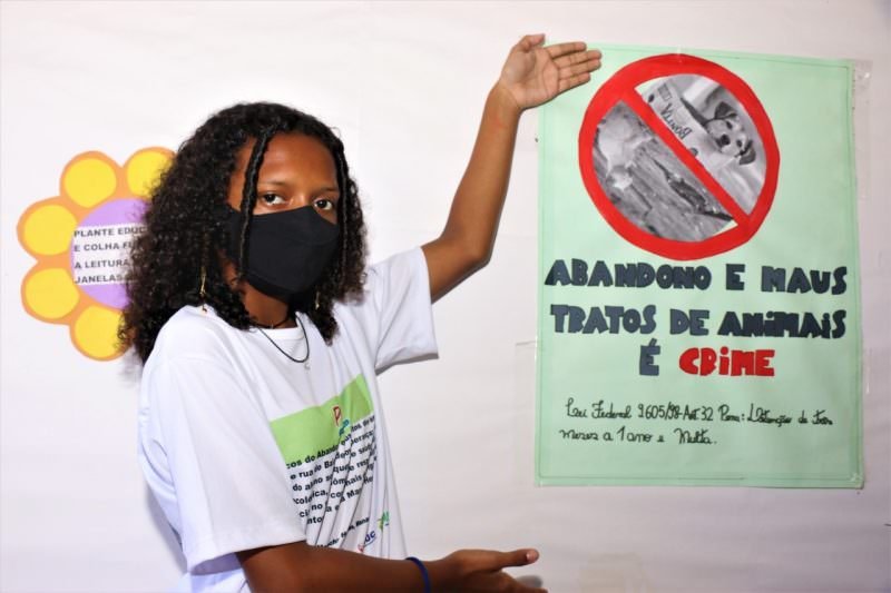A estudante Stephany de Araújo Gomes conta como se sentiu ao abordar um tema que não tinha tanta afinidade no dia a dia: “Gostei muito de participar do projeto, pois me incentivou muito a ter uma outra visão do cuidado com os animais que antes não tinha, então, hoje, consigo ver a importância de prevenir o abandono dos animais, assim como os maus-tratos”, disse.