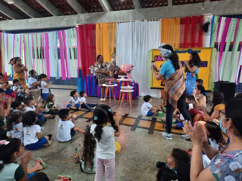 A creche municipal Neide Tomaz Avelino, no bairro Jorge Teixeira, atende 182 crianças no maternal 1, 2 e 3, e trabalhou durante toda a semana para a ação.