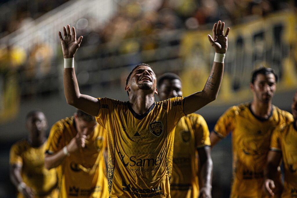 O primeiro gol aurinegro saiu cedo, aos nove minutos. Após “latereio” cobrado por Raylison Pacheco, a bola sobrou na grande área para o atacante uruguaio, que dominou, tirou os defensores da marcação e bateu no canto direito de Digão. Aos 18, os visitantes empataram com Tcharlles, que aproveitou bola cruzada por Gabriel Davis para deixar tudo igual.