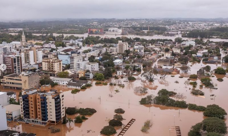 Enchente do Rio Taquari na cidade de Lajeado, no Rio Grande do Sul. (Foto: marcelocaumors/Instagram)