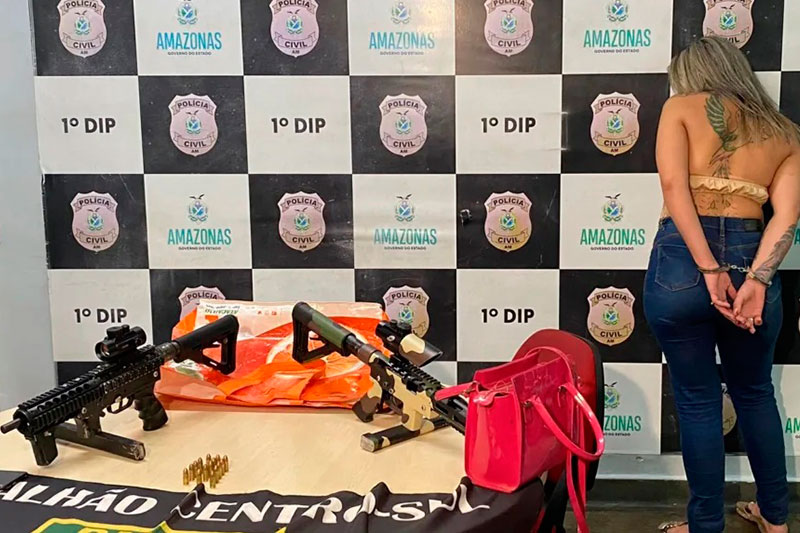 Adriana Andrade já havia sido presa em flagrante em 1º de outubro de 2024, ao lado do companheiro Ramon Carvalho de Oliveira, portando duas submetralhadoras calibre 9mm municiadas no bairro Parque Dez.