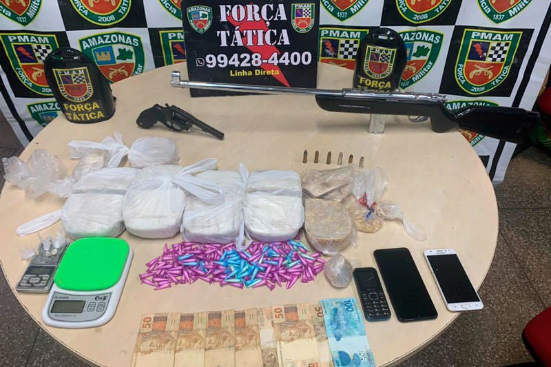 Manaus (AM) – Maurício Galdino Rodrigues, 29, foi preso em flagrante no início da noite desta sexta-feira (9), com drogas, armas de fogo e dinheiro. O fato aconteceu em uma quitinete, no bairro Jorge Teixeira 1, na Zona Leste de Manaus.